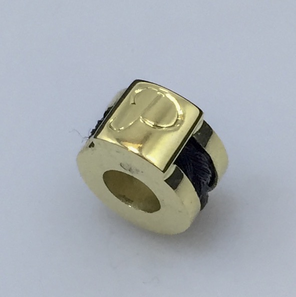 De bead vervaardigd in 14 krt geel goud. Hier met een letter erin gegraveerd maar er kan natuurlijk ook een steentje in gezet worden.