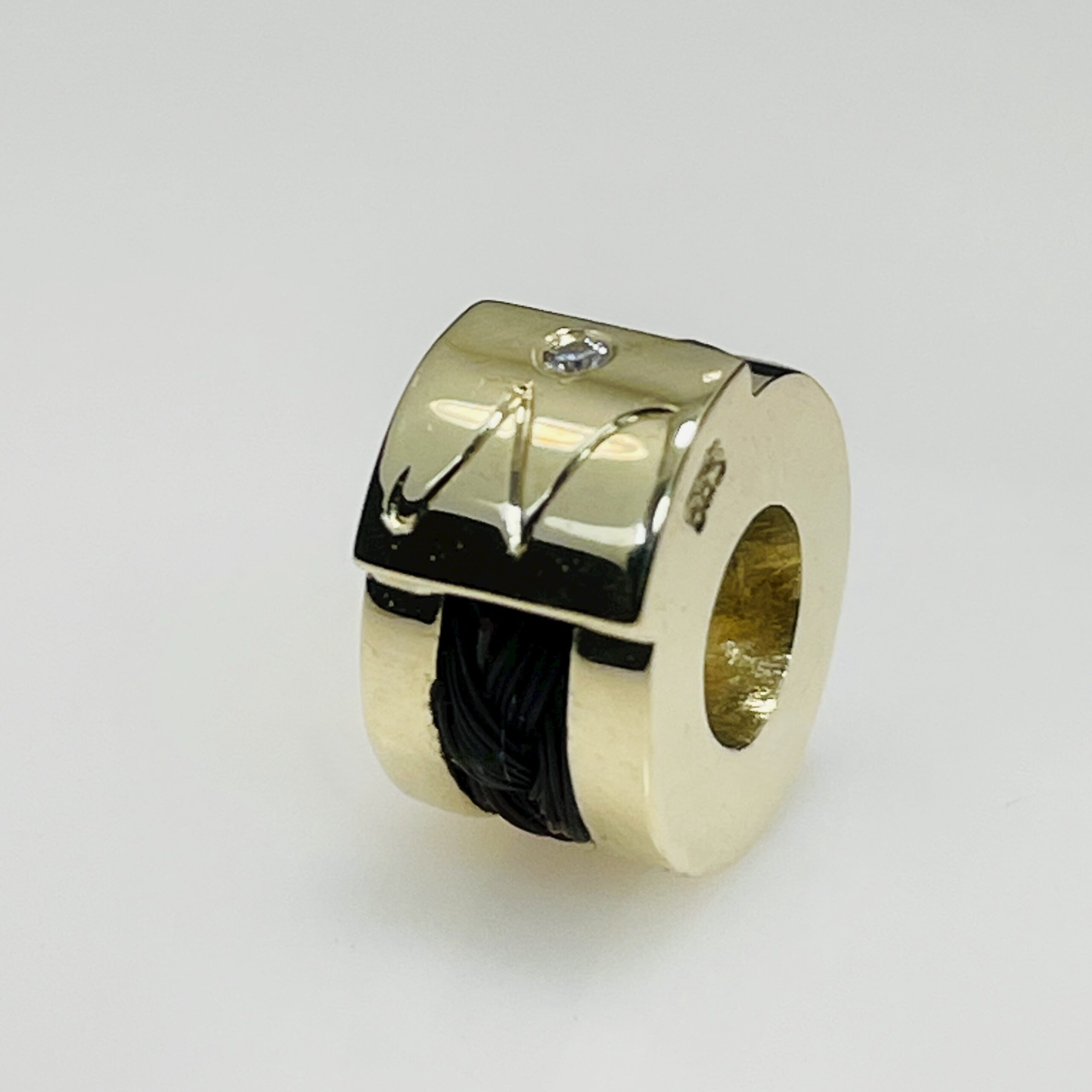 De bead kan ook in rood of wit goud gemaakt worden.