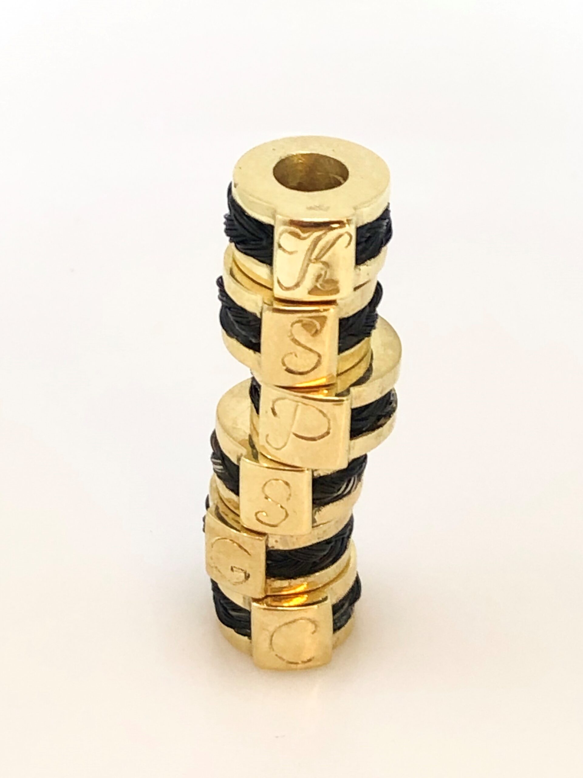 Als de bead als hanger aan een collier gedragen wordt kan de gravure natuurlijk ook gekanteld erin gegraveerd worden.