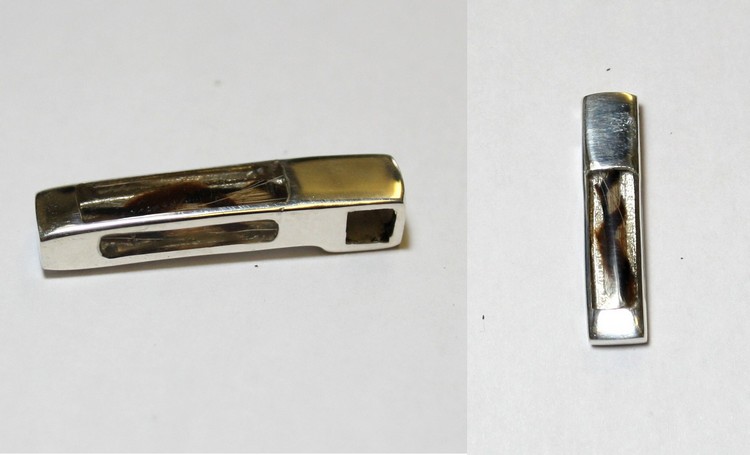 Deze hanger is aan beide zijden opengewerkt zodat de vlecht of lossen haren zeer goed te zien zijn.