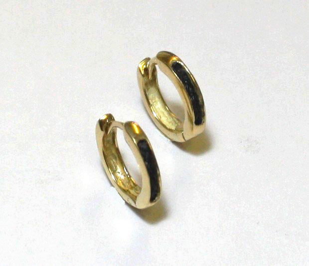 Deze verfijnde 14 krt geel gouden klapcreolen hebben een breedte van 2,5 mm en een doorsnede van 13,5 mm.
