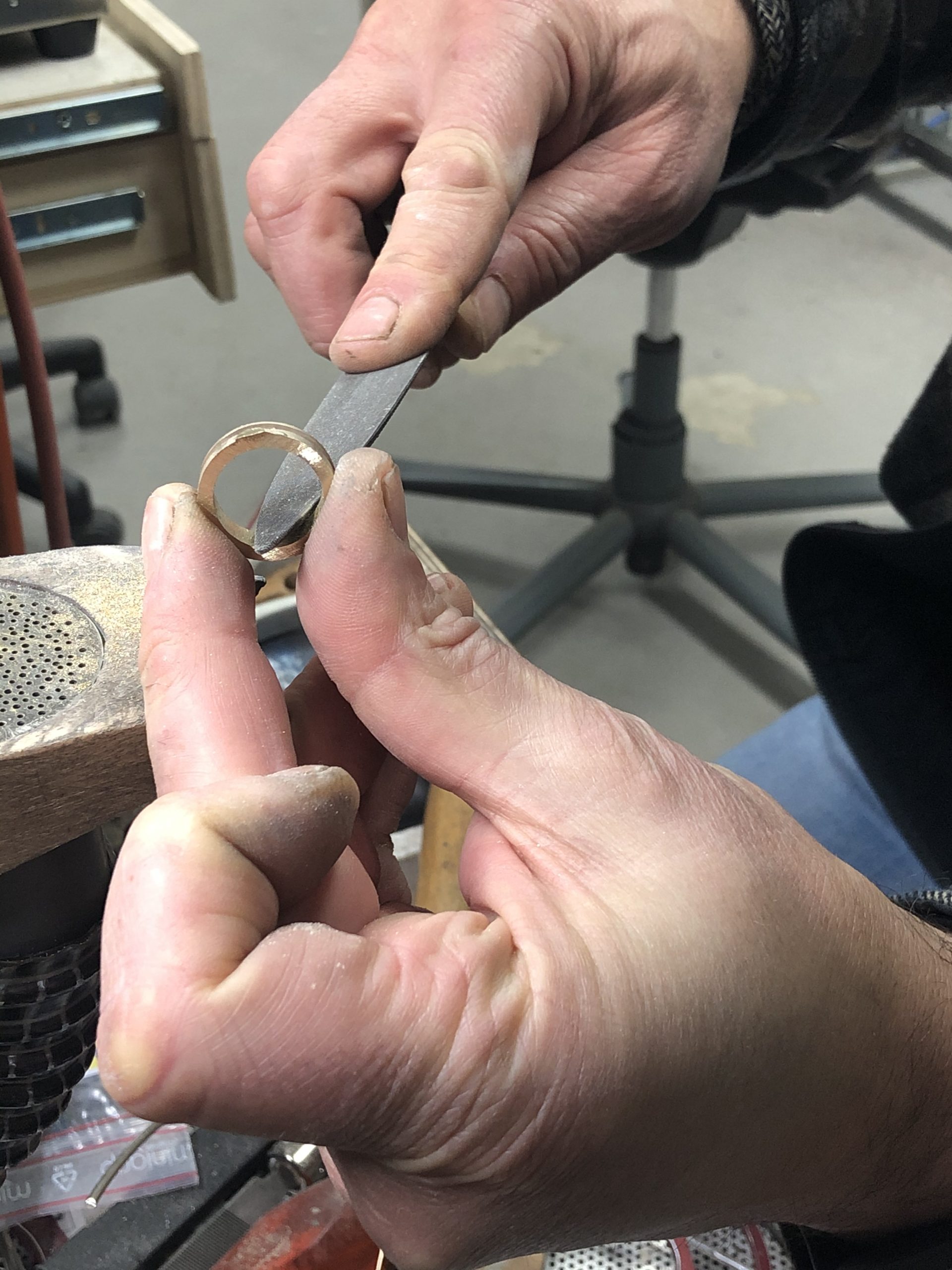 Mart Holtrop maakt de ringen helemaal met de hand dus als je bijvoorbeeld grotere steentjes wilt hebben of extra steentjes aan de zijkant dan kan dat gemaakt worden.