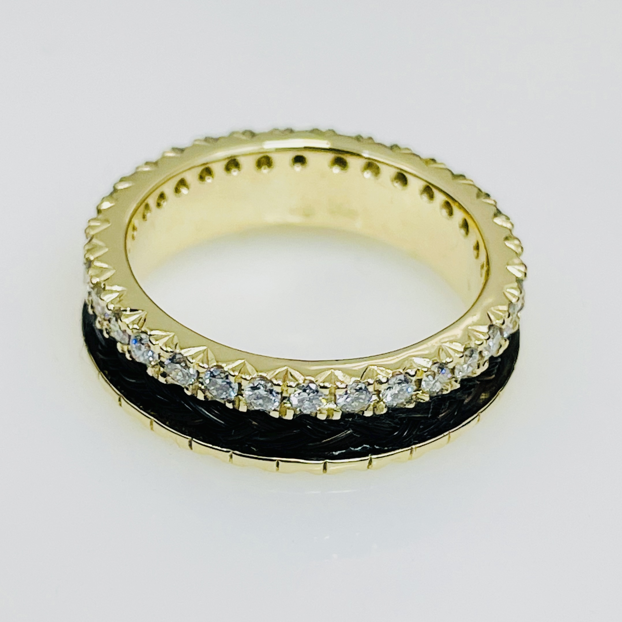 14 Krt geel gouden ring helemaal rondom gezet met diamant, briljant geslepen.