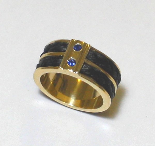 Deze 14 krt geel gouden uitvoering is voorzien van 2 saffieren.