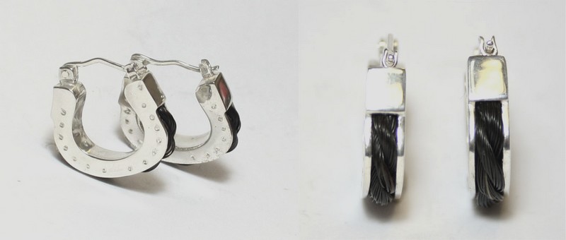 Zilveren creolen in de vorm van een breed hoefijzer.