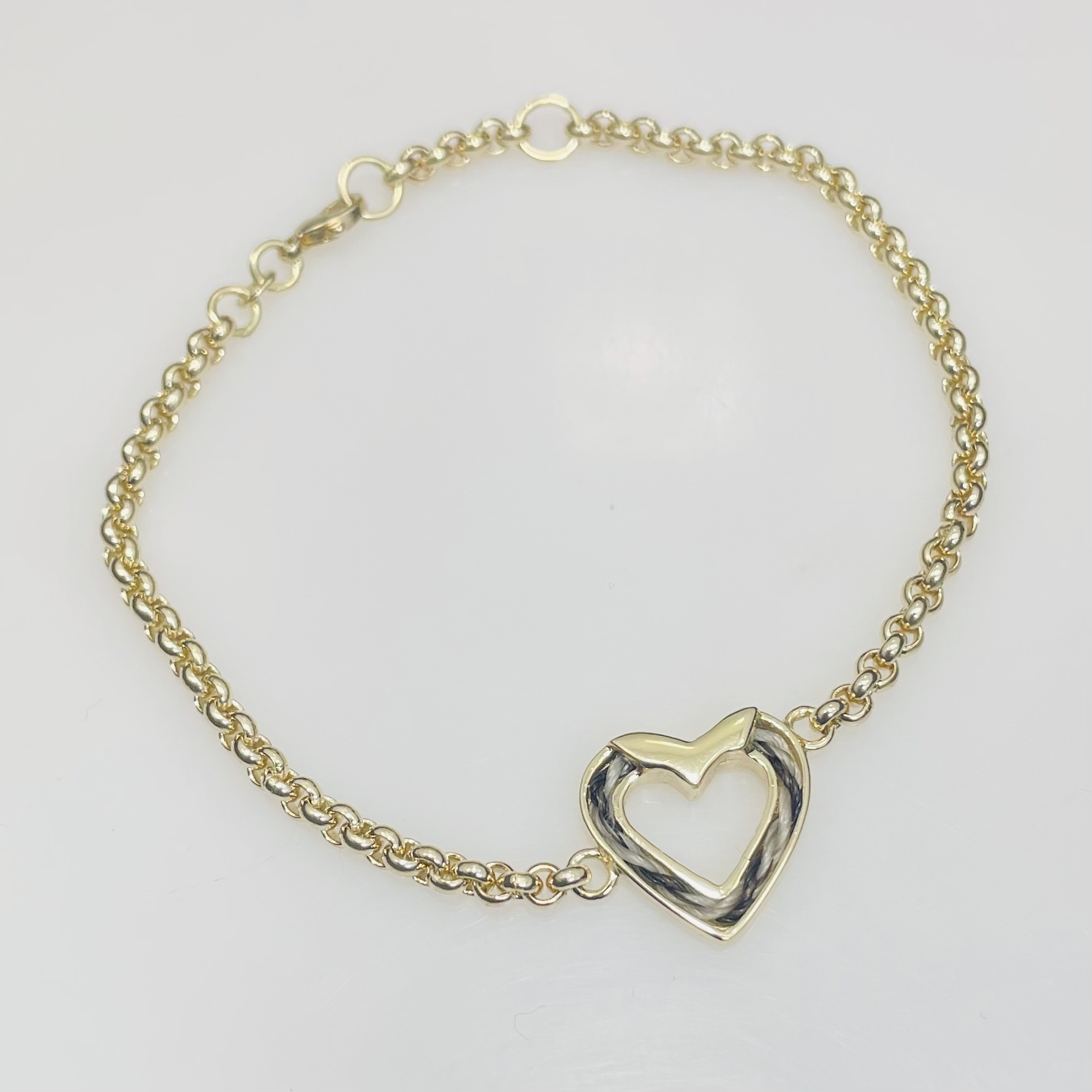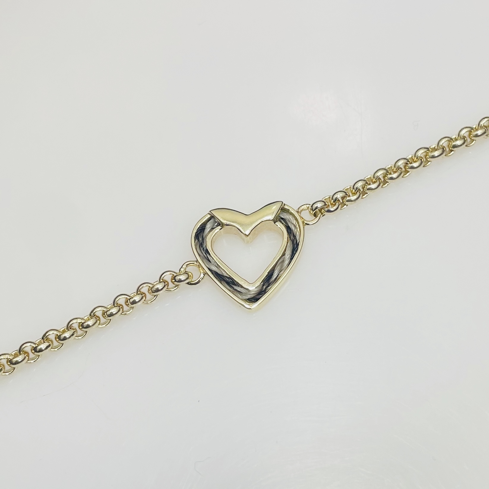 14 krt geel gouden jasseron armband met geel gouden hartje met ingelegde vlecht van uw paard.