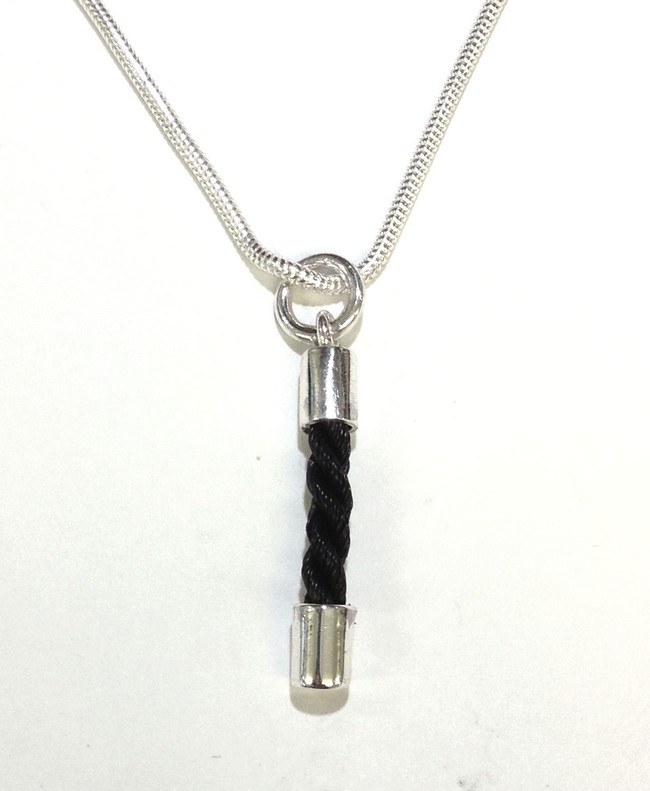 Twee zilveren uiteinden met een stukje koord ertussen.