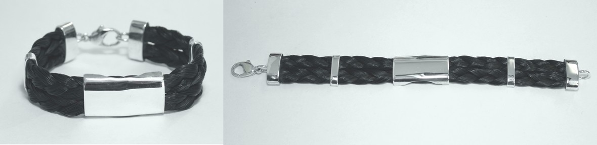 Dubbel gevlochten zilveren armband met zilveren tussen plaat.