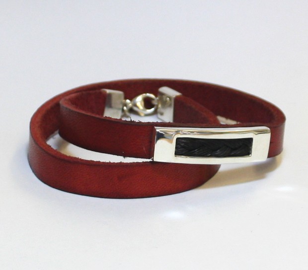 Op het dikke leer van 1 cm breed en 3,3 mm dik zit een zwaar zilveren houder voor de paardenharen bevestigd. Ook de uiteinden en de sluiting is weer van 1e gehalte zilver en zeer degelijk uitgevoerd.