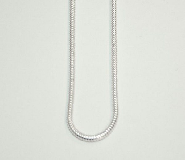 Zilveren slangencollier van 2mm dikte en 50 cm lengte. Het collier kan desgewenst kosteloos ingekort worden tot 45 cm.