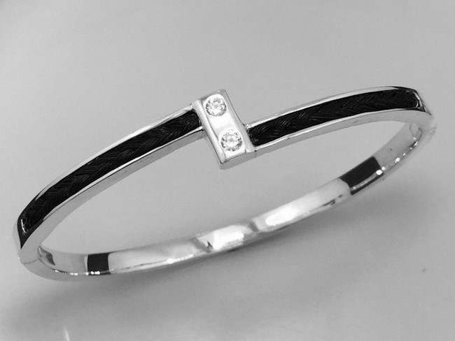 Koord armband dik met zirkonia en zilver